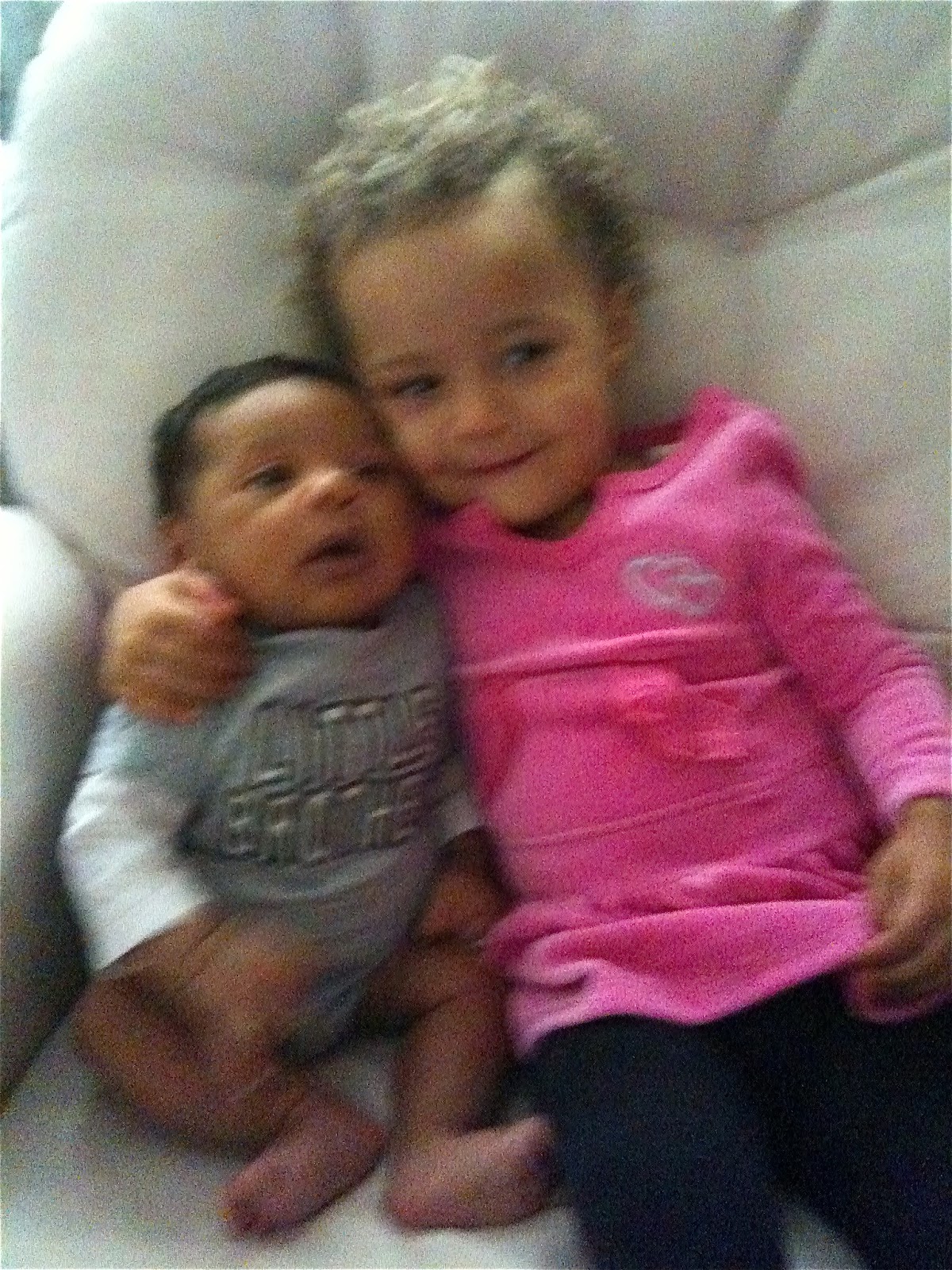Raya is still a wonderful Big Sis. She's just so sweet to Kallen. Not once has she tried to get feisty with him or be anything but absolutely loving. It's really easy to get cute pictures of them together because Raya loves to hold him and because Kallen has no clue that his mom willingly hands him over to a not-so-gentle toddler for a photo opp.